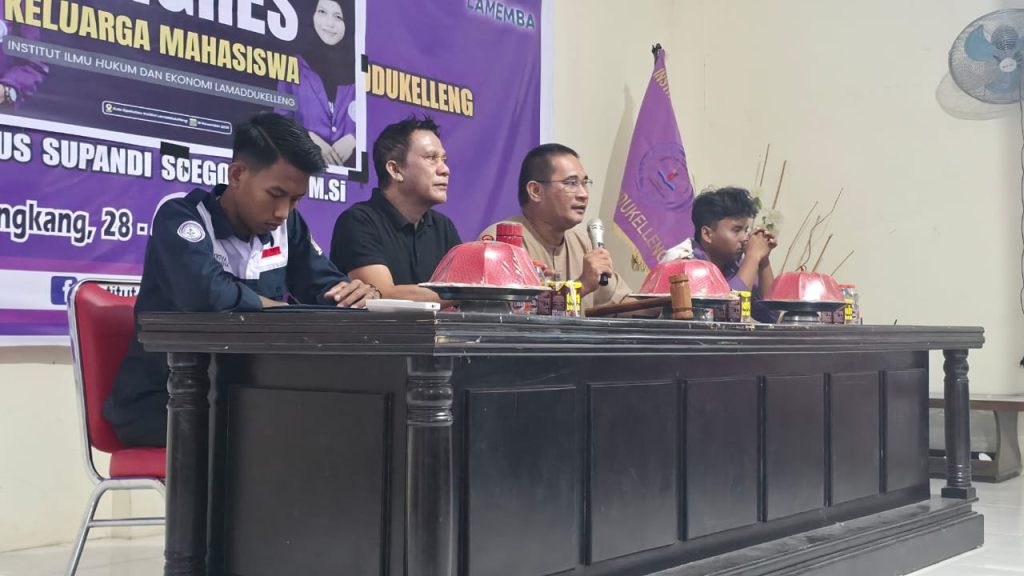 HUMAS– Kongres Keluarga Mahasiswa (KEMA) Institut Ilmu Hukum dan Ekonomi (IIHE) Lamaddukelleng sebagai wadah tertinggi dalam pengambilan keputusan organisasi keluarga mahasiswa, sekaligus sebagai momentum evaluasi, refleksi, dan regenerasi kepemimpinan di lingkungan mahasiswa IIHE Lamaddukelleng, berlangsung di Aula Lt. II Kampus Ungu, Senin, 10 November 2025.